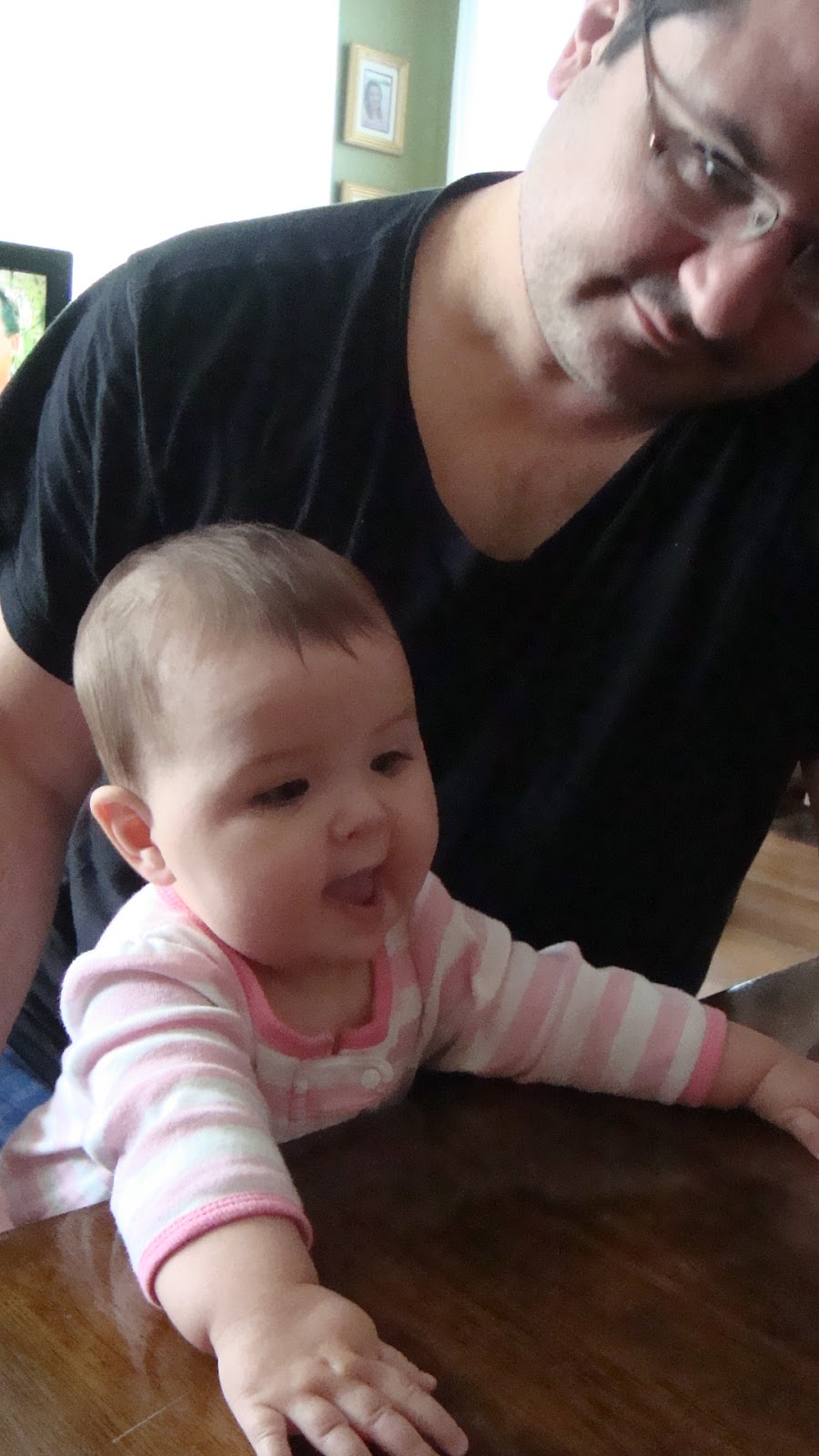 ...is magical. She's always so smiley, so happy to see us. She smiles at herself in the mirror over her changing table. Then, after she's eaten, she's even smilier and cuddlier.